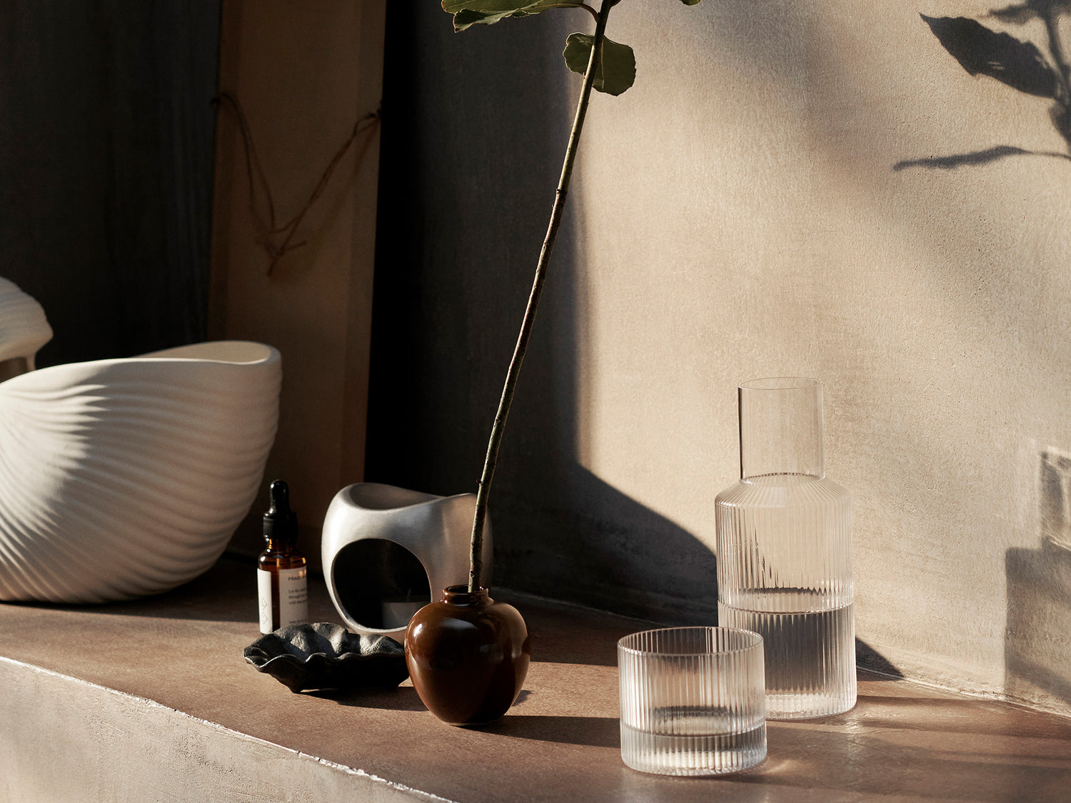 Danish Ferm Living is all about calm shapes and soft, thoughtful colours. Their palette clearly defined, earthy browns, creamy whites, soft beiges are paired with muted shades, always beautifully balanced. Founded in Copenhagen in 2006, Ferm Living brings a certain ease to Scandinavian minimalism, blending clean lines with organic forms and sometimes a touch of feminine elegance. It's Danish design of this day: often feminine, even delicate, sculptural or rustic but always warm and inviting. Nearly every object is could be a work of art.