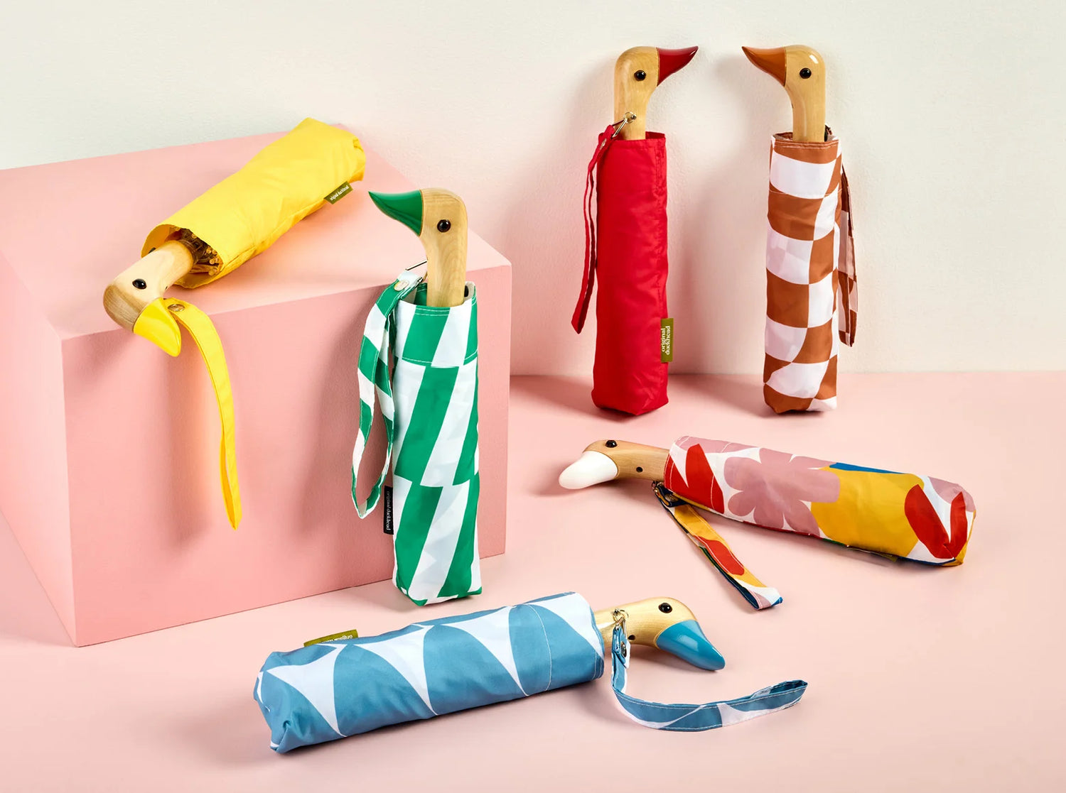 Original Duckhead umbrellas are designed with both charm and conscience. Founded in London, the brand is known for its cheerful colors, playful duck-shaped handles, and compact, practical design. Each umbrella is crafted from recycled and sustainably sourced materials, making it a stylish companion for rainy days and a thoughtful choice for the planet.