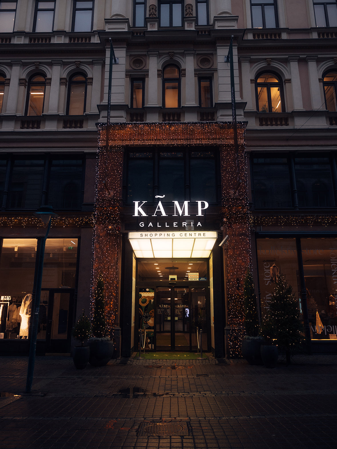 Kämp Gallerian upean lasikupolin alla on toinen joulukauppamme. Pääset sinne Mikonkadun, Pohjoisesplanadin ja Aleksanterinkadun sisäänkäynnin kautta.