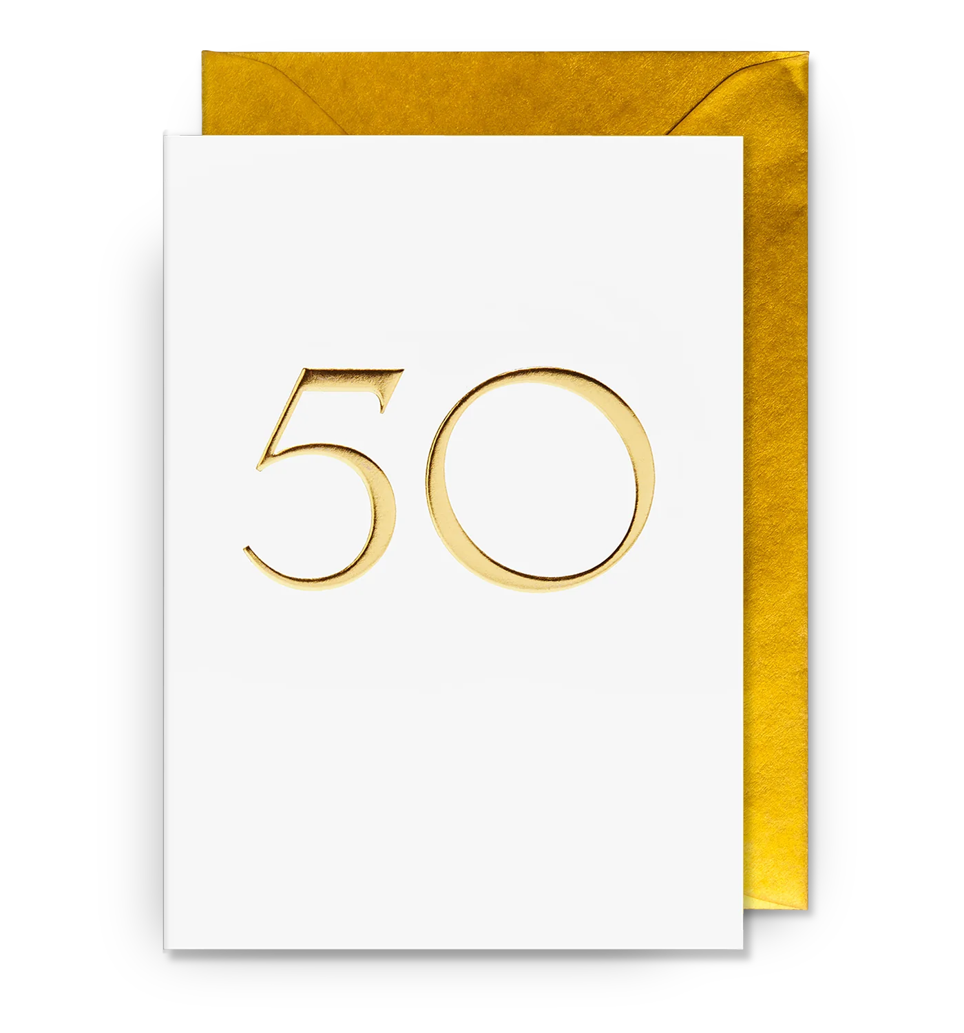 Blank inside, this classy card in white and gold comes with a matching envelope.