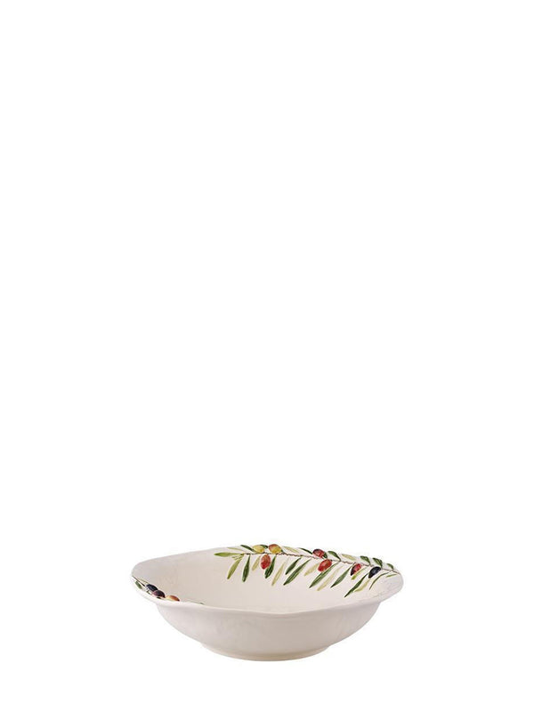 The cream-coloured bowl has details of olive branch. Hand-painted they reflect the artistry and heritage synonymous with Bordallo Pinheiro's ceramic. Perfect for serving appetizers, dips, or other salty treats, this bowl adds a natural, elegant touch to any table setting. Durable and versatile, it’s ideal for both everyday use and special occasions.