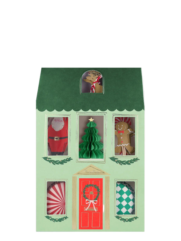 Who lives in this merry little house? It's happy Christmas icons, and colorful cupcake cases, ready to make your festive treats look fantastic! This kit is perfect to give your Christmas cupcakes the wow-factor, and makes an incredible gift for kids, and adults, who love to bake.
