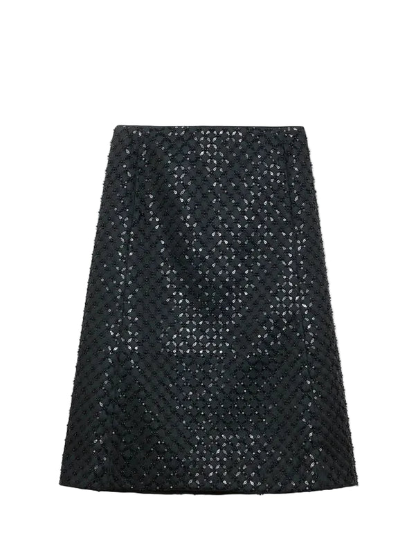 Laid-back to late-night in gold brocade: The patterned lurex mini-skirt has an in-seam side zip closure and lace detailing on the waistband. The A-line style can be worn as a set with the matching blouson jacket.