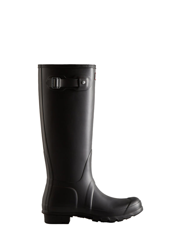 The matte-finish boot has a small heel, a signature Hunter logo at the front, and a stylish metal buckle at the side. Inside, a soft textile lining ensures comfort.