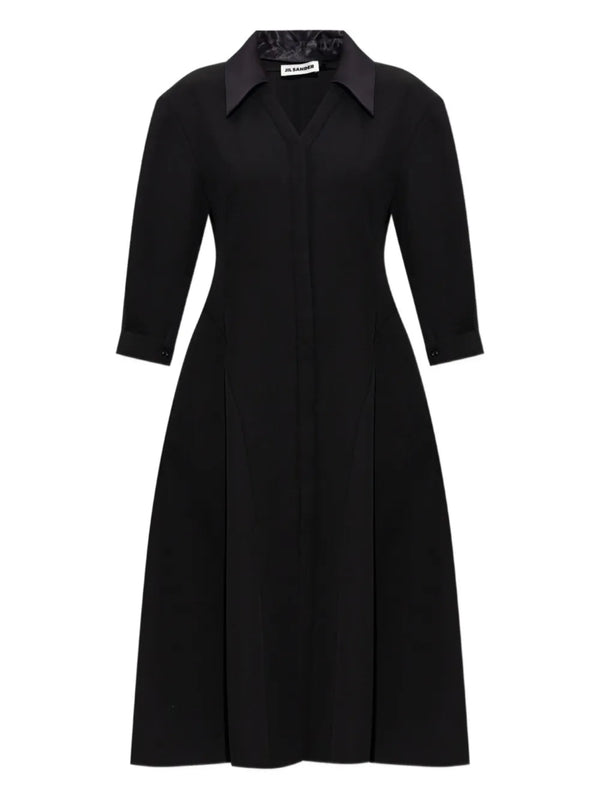 Wool midi dress with a sharp collar in black. A sophisticated, timeless style with elevated detailing makes this one a wardrobe classic.