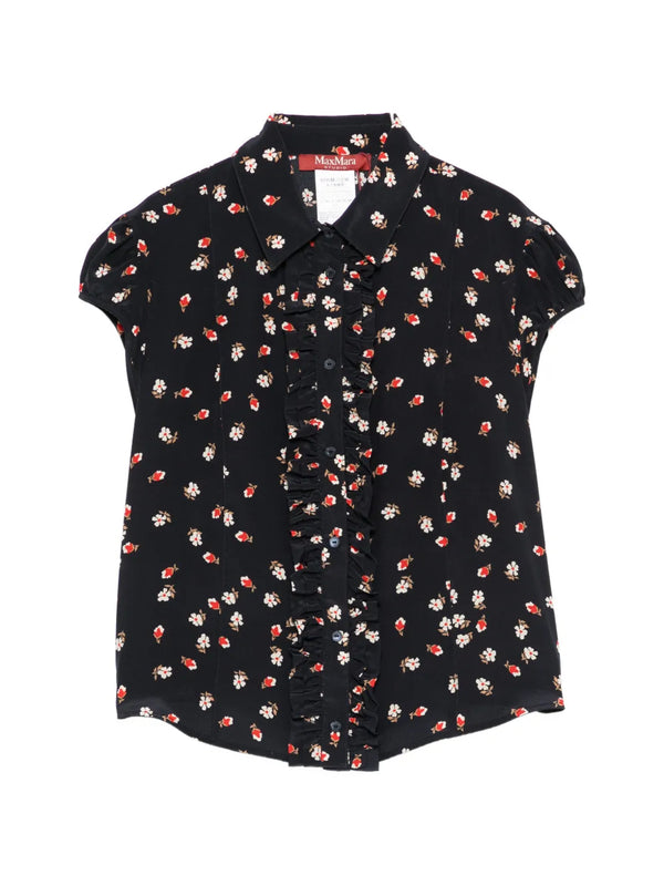 Canale silk crepe flower print top, navy
