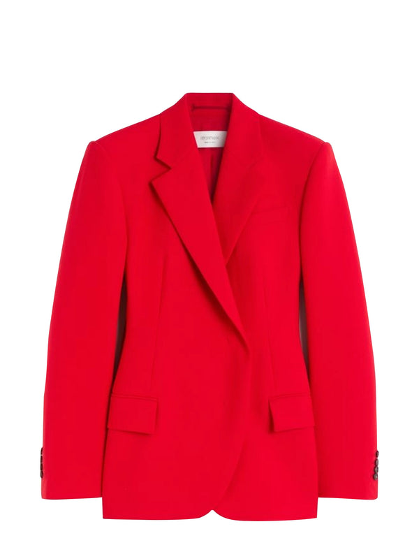 Fierce red colour is a statement that's easily accessorized up or down, so pair this with mathcing trousers, laid-back jeans or evening gown, everything looks great with this Italian chic blazer.