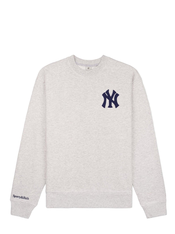Classic heather grey heavy cotton sweatshirt with heritage Yankee and Sporty & Rich logo.