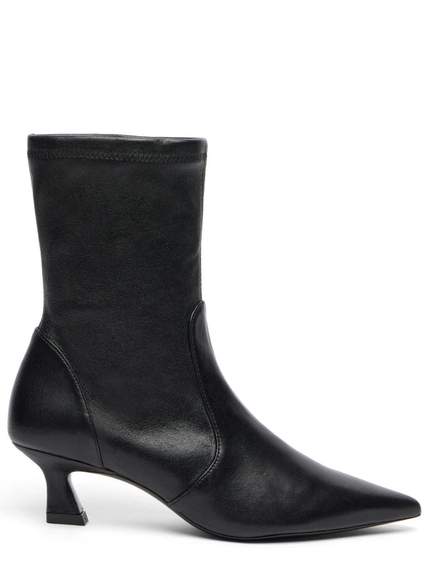 The Vinnie Bootie 50 is crafted with Stuart Weitzmans's signature focus on style and comfort. Its sculptural angled 50-mm heel is thoughtfully placed to offer extra support. Completed with the industry-leading stretch construction and distinctive squared-off back counter, Vinnie is an elevated sock bootie to finish off any seasonal looks.