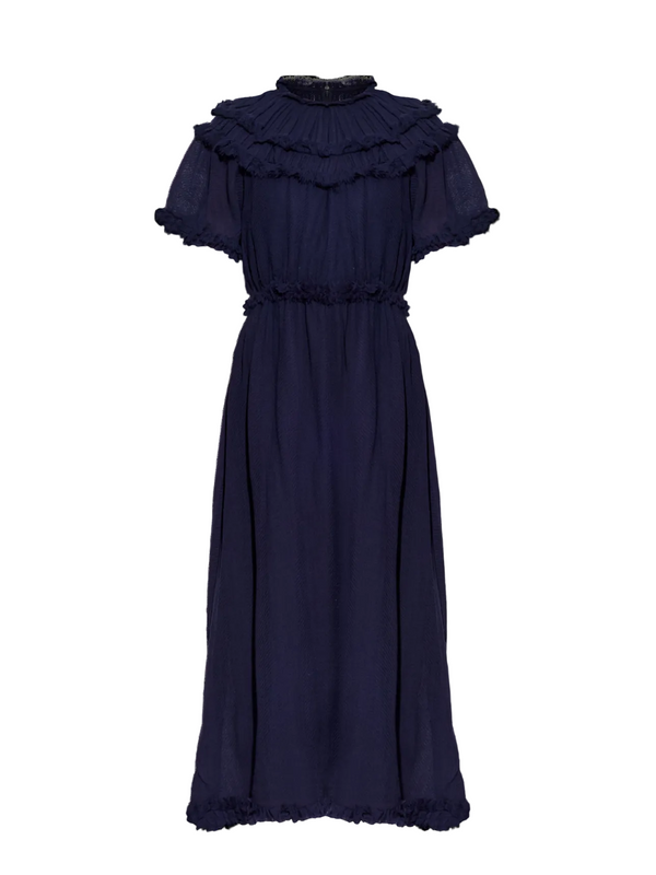 Ayan short sleeve wool midi dress, midnight blue