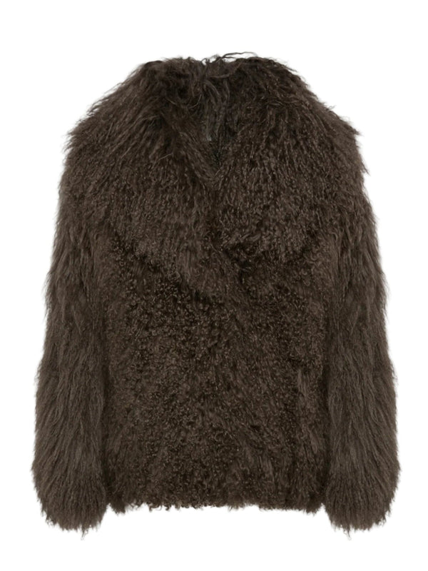 Made from long-haired Mongolian lambskin, this puffer jacket is warm and cosy yet comfortable to wear. Featuring pockets and a hook fastening, it has subtle details and a minimalist cut. Its collar, combined with the long hair, creates an interplay of reflections and shapes. A style that can be worn day or night for a bold look and an ultra-feminine silhouette.
