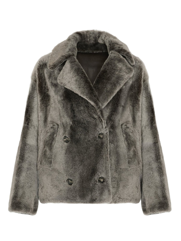 Shearling pea jacket, grey