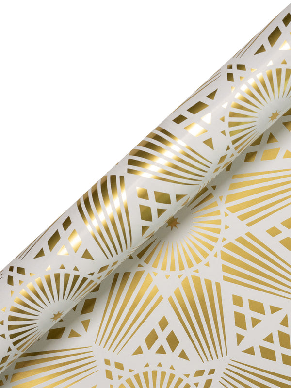 Starsky Christmas Decorative paper brings an elegant Art Deco mood to festive gift wrapping. Designed by Hanna Werning, the crisp white background is adorned with refined gold-foiled details, creating a graphic yet timeless look. Sophisticated and celebratory, it’s ideal for wrapping Christmas gifts, special presents, or design-led holiday styling.