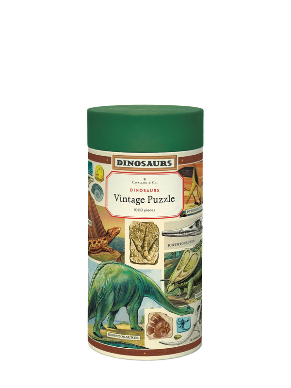 A quality 1000 piece jigsaw puzzle by Cavallini featuring vintage illustrations of dinosaurs. Rrrooooowwww!