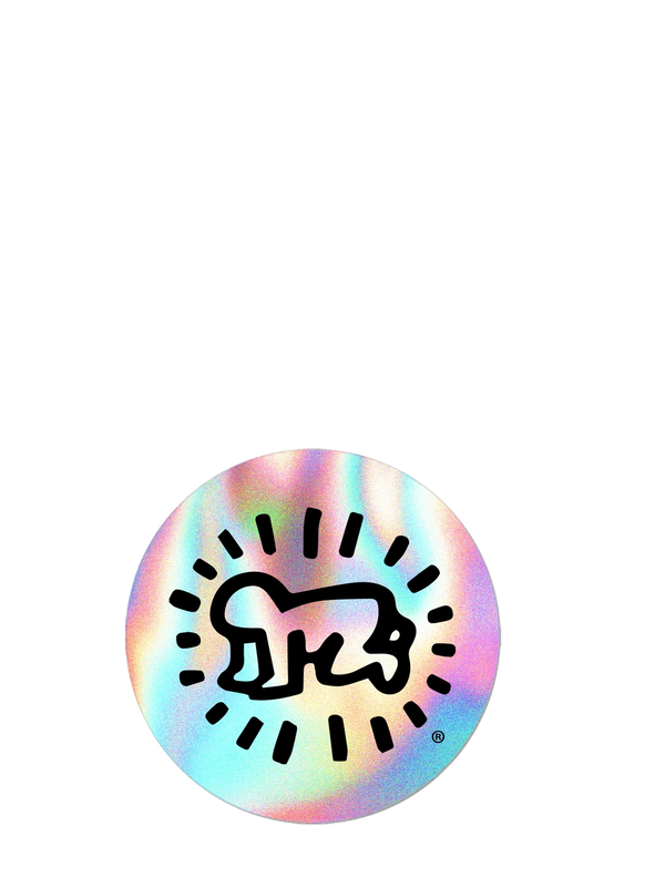 Haring’s signature symbol in rainbow holographic.
