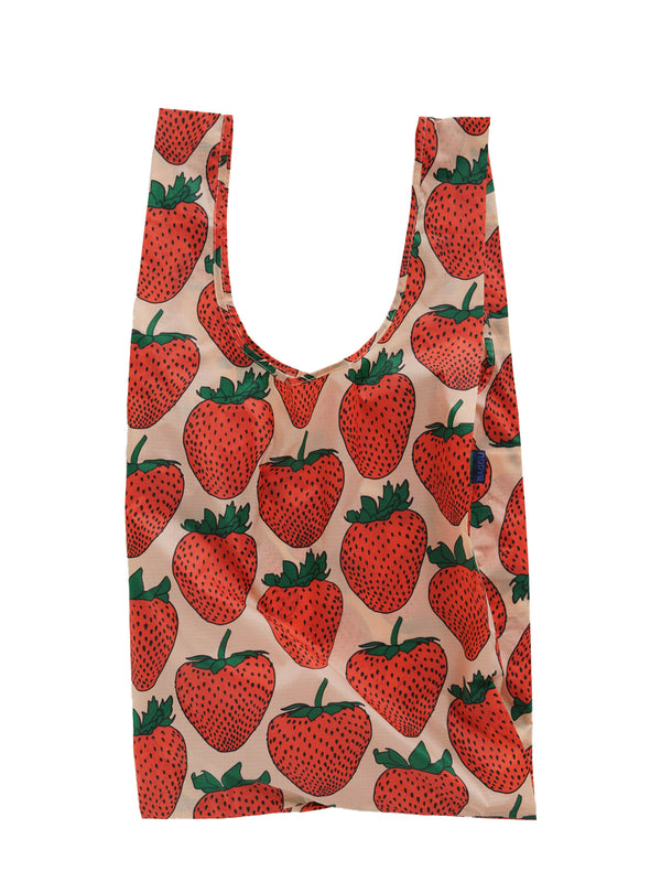 The joyful strawberry print gives this big BAGGU a burst of colour and charm. It is an impressively roomy carry-all that handles travel days, beach trips, laundry loads and big shopping hauls with ease. Soft, strong and effortless to throw over your shoulder, it becomes a cheerful everyday companion. When the day is done, it folds neatly into a compact pouch and waits for the next adventure.