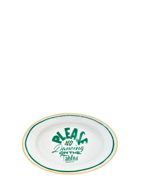 Porcelain small oval dish, No dancing on the tables. Dishwasher safe - max 250 washes. Microwave safe. With love chosen from Bitossi!