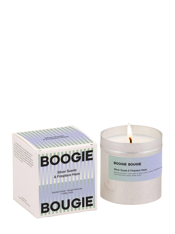 Silver Suede & Fireplace Haze scented candle (250g)