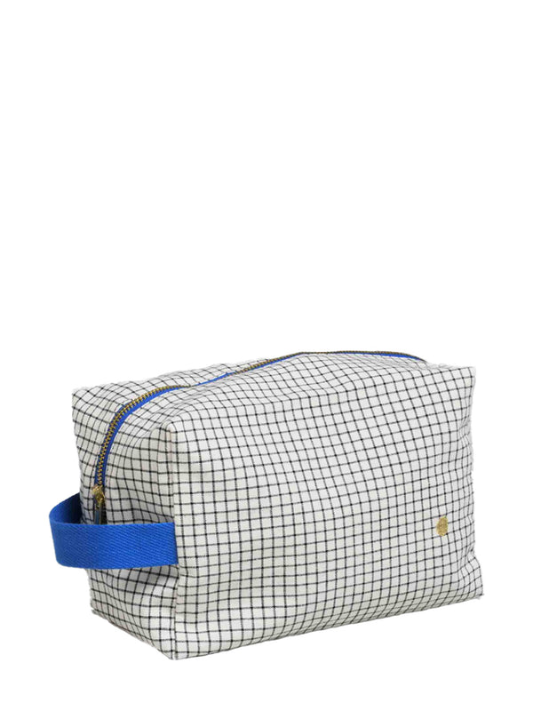 Gustave l cube pouch, grid and blue (14 × 22 × 11 cm)