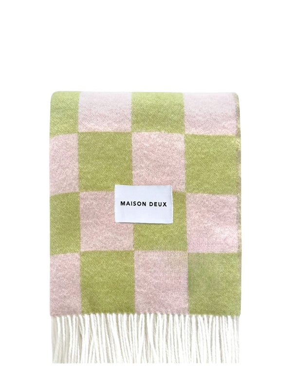 A soft and premium jacquard-woven blanket made from 100% New Zealand wool. The XL size makes it perfect for cosy evenings, styling over a sofa or using as a bedspread. The design features a reversible checkerboard pattern with inverted colours on the opposite side and fringes on the short edges.