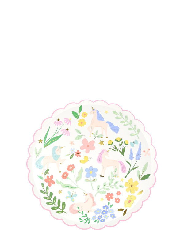 The combination of unicorns and meadow flowers is a match made in party paradise. These paper plates, with a stylish scalloped border, will instantly make your unicorn or princess party look so magical. Great for mixing and matching with pastel tableware and decorations.