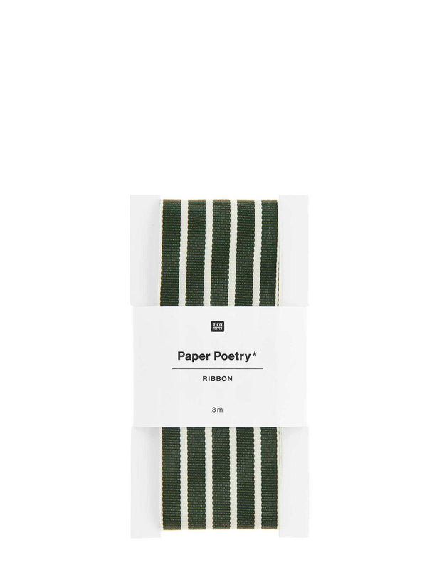 Woven ribbon stripes, green/off-white, 38 mm x 3 m