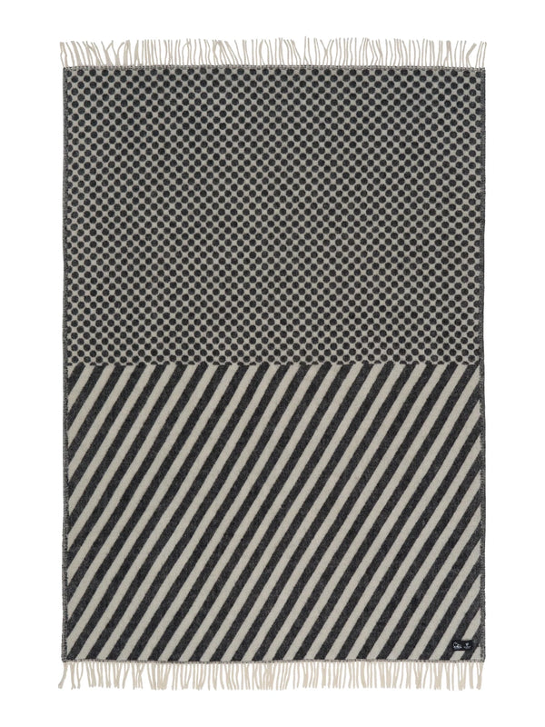 Dot & stripe wool throw, black-cream