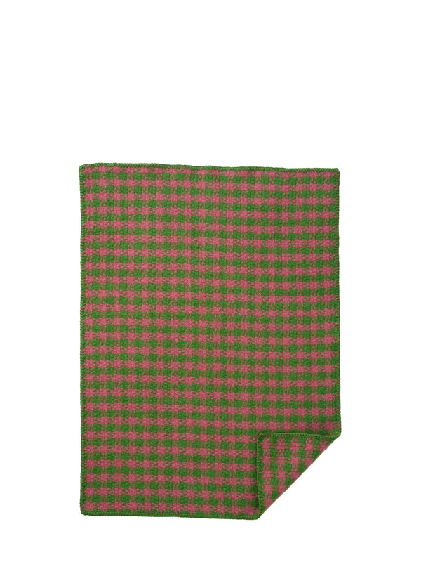 The small Dogtooth blanket in 100% lambswool for children has the same classic dogtooth pattern as the larger version, but in green/pink colours. Lambswool keeps little ones warm and dry because it breathes and is naturally dirt-repellent. Measuring 65×90 cm, it is perfect for the pram or cot.