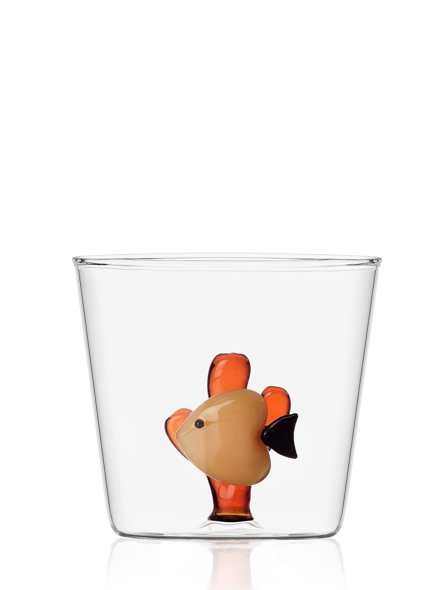 Like a fish bowl from an old cartoon, this round jug has a sunny golden fish swimming at the bottom. Hand-made and flame-worked, the pitcher is gorgeous and durable, for any fresh ice tea or just plain tap water! The volume 240 cl is ample but thanks to the borosilicate glass, the jug light to pour. And the best part is that it's dishwasher safe!