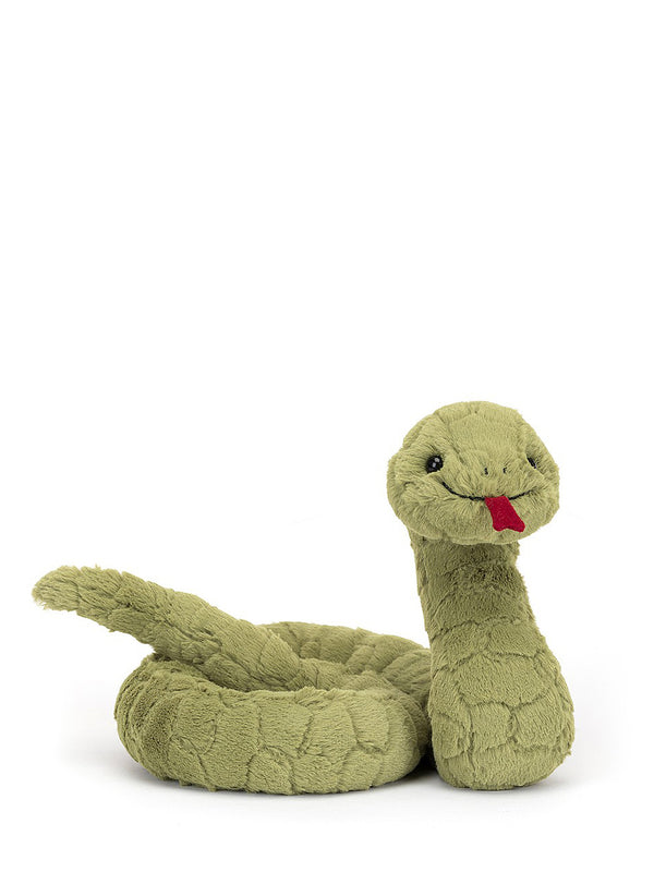 Stevie Snake is such a cheeky chum - always doing bleps with that suedey red tongue! Curly and springy, this grassy snake loves to coil and cuddle in squishy-soft knots! With funky scale fur, a perky pose, bright black eyes and a curious smile, Stevie's an abssssolute sssssweetie!