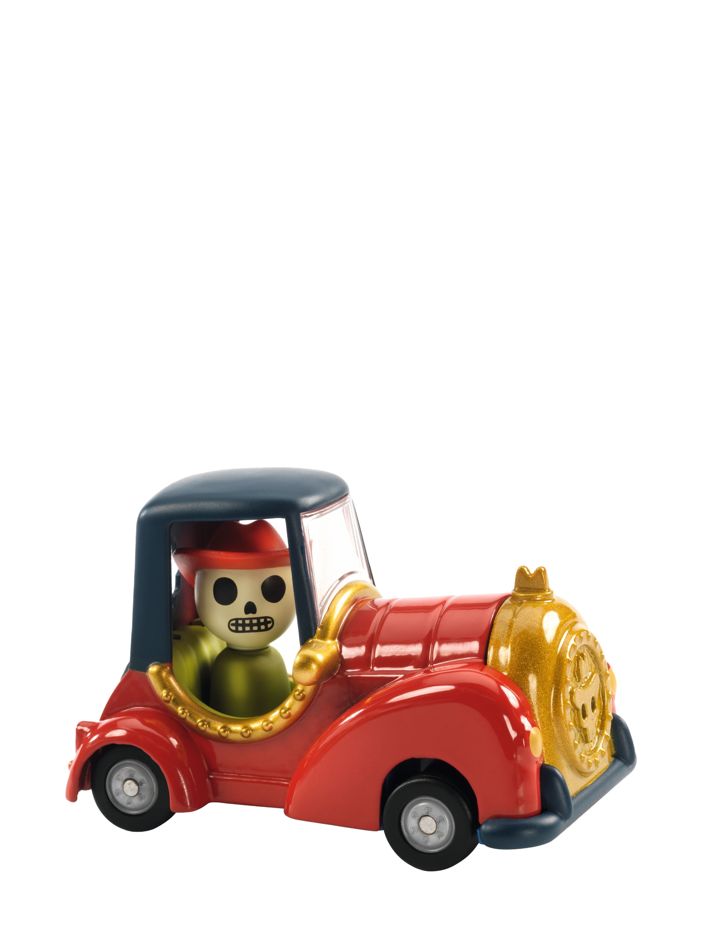 Let the race begin, who will win? Choose the racing car that suits you from Djeco's Crazy motors series. Electro Choc is a small metal car with suspension. Electro Choc and its driver will electro-choccc! in the race! The car has plastic decorations and the driver is glued to the car. Painted looking very cool!