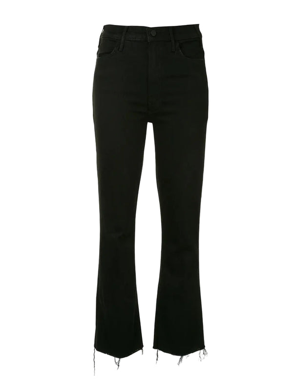 Hustler ankle-crop kick flare jeans. These bestselling high-waist flare jeans have an ankle-length inseam and a raw hem. Made from stretch denim. Not Guilty is their best-selling black wash. Made in Los Angeles.