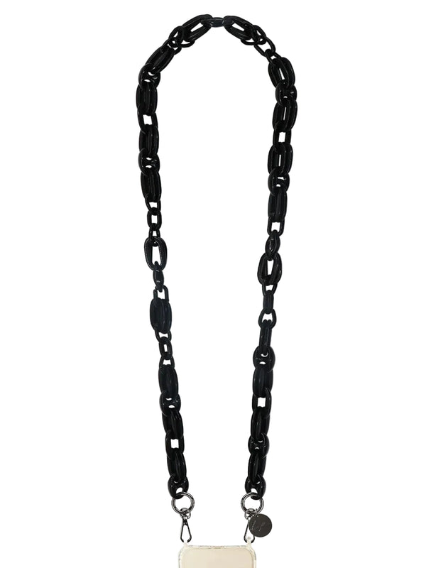 This 120 cm long black resin amber phone chain clips onto our ring cases or our universal adapter with its rotating carabiners. Its plus points? Its engraved LCF medal, its transparent links and their play of light.