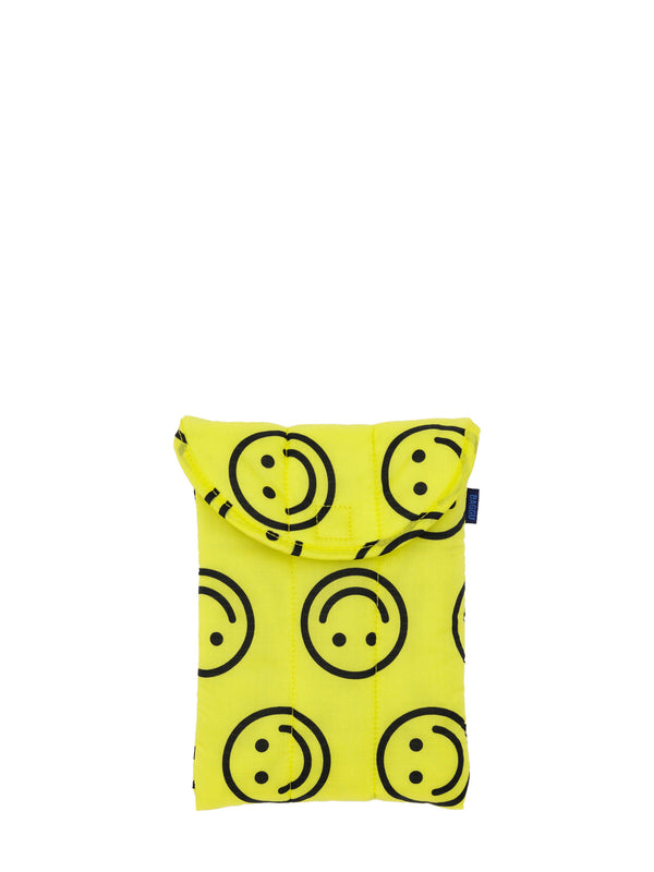 BAGGU turns everyday tech sleeve into something cheerful with this quilted yellow happy smiley print. A soft, protective home for your 8" tablet. Puffy tablet sleeve keeps your device cushioned without adding bulk. The velcro closure opens quickly and secures easily, while the bright smiley pattern brings a burst of joy every time you reach for it.