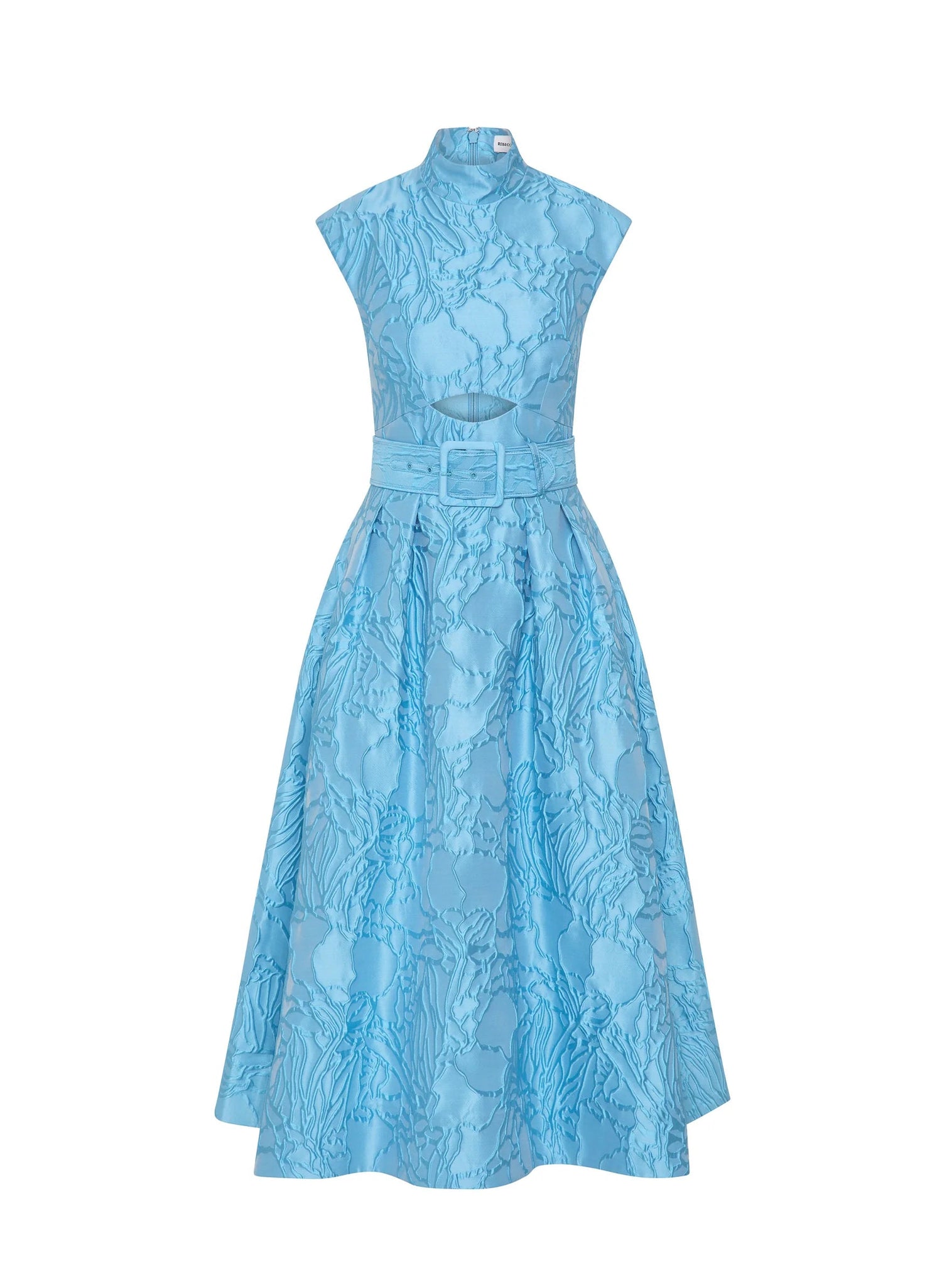 The Sapphira Mini Dress harmonises timeless sophistication and chic style, crafted from satin twill in a modern blue floral print. Highlighting a shirt dress silhouette, it features voluminous short sleeves with cuff detailing and a sleek stand collar for a polished finish. A concealed front placket adds a refined touch, while the self-belt cinches the waist to enhance the flattering A-line mini skirt. Designed for comfort, this dress is a stylish staple for your wardrobe.