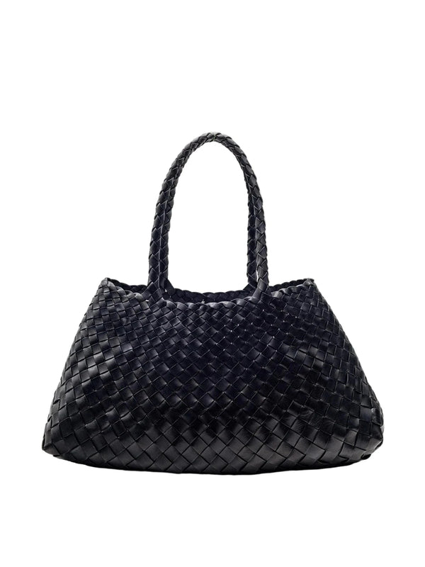 The Dragon Diffusion Santa Croce bag is formed of irregular leather weaving straps that taper towards the brim, creating a practical yet elegant shape that’s perfect for running around the city—taking your outfit from day to night. Remaining true to traditional basket weaving techniques, the Santa Croce comes unlined and has an open top.