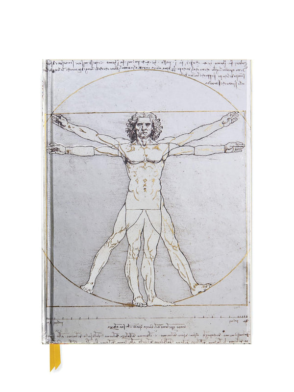 A new series of blank sketch books, with luxurious bindings. Combining high-quality production with on the best and most popular art, the covers are printed on foil and embossed, foil stamped with gilded edges. Perfect for personal use, for anyone who sketches or makes notes, for students and artists, they also make a brilliant gift. This example is based on 'The Vitruvian Man', c. 1492 by Leonardo da Vinci (1452–1519).