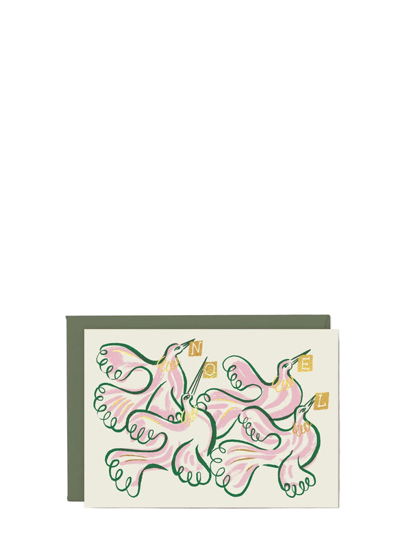 These beautifully peaceful Christmas doves bring gentle festive greetings. This greetings card is designed in minimalist colours and finished with gold foil detailing.