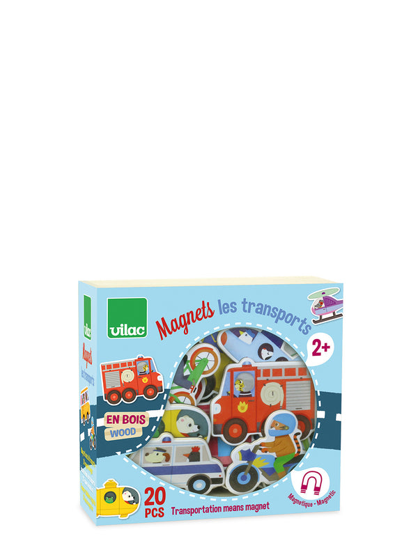 20 magnets decorated with lovely illustrations to learn more about means of transport.