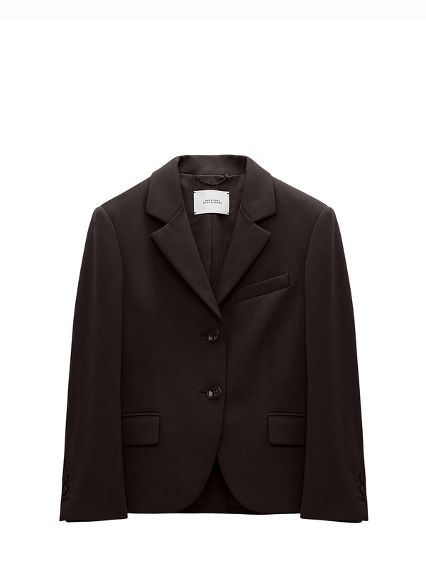 Cropped blazer in Punto Milano material. This brown Punto Milano blazer is fitted and has a cropped silhouette. The blazer has classic styling and 3/4-length sleeves.